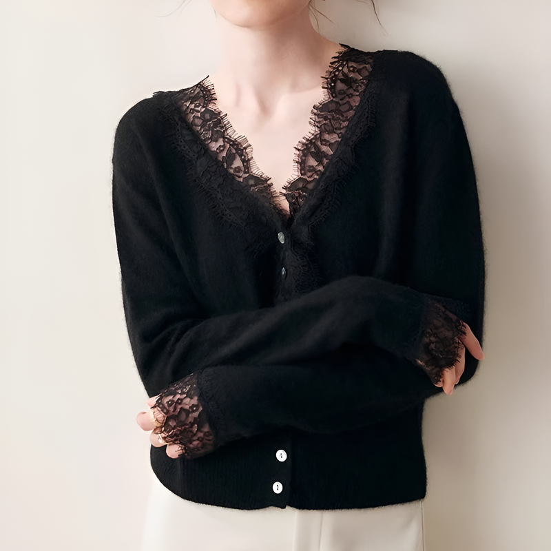 レース裾のVネックニットトップス