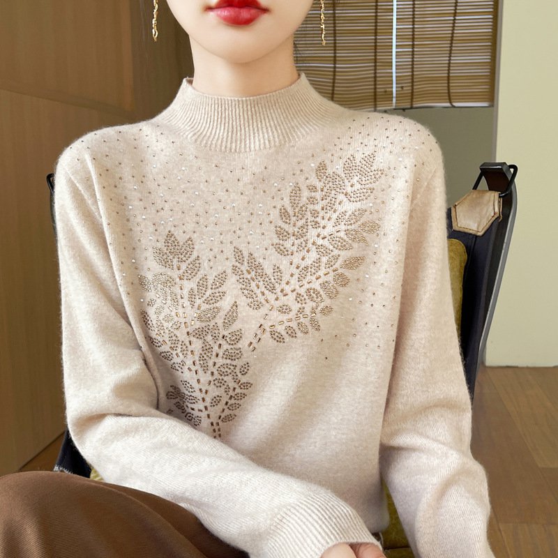 [100%オーストラリアウール] ラインストーン付きニットインナー